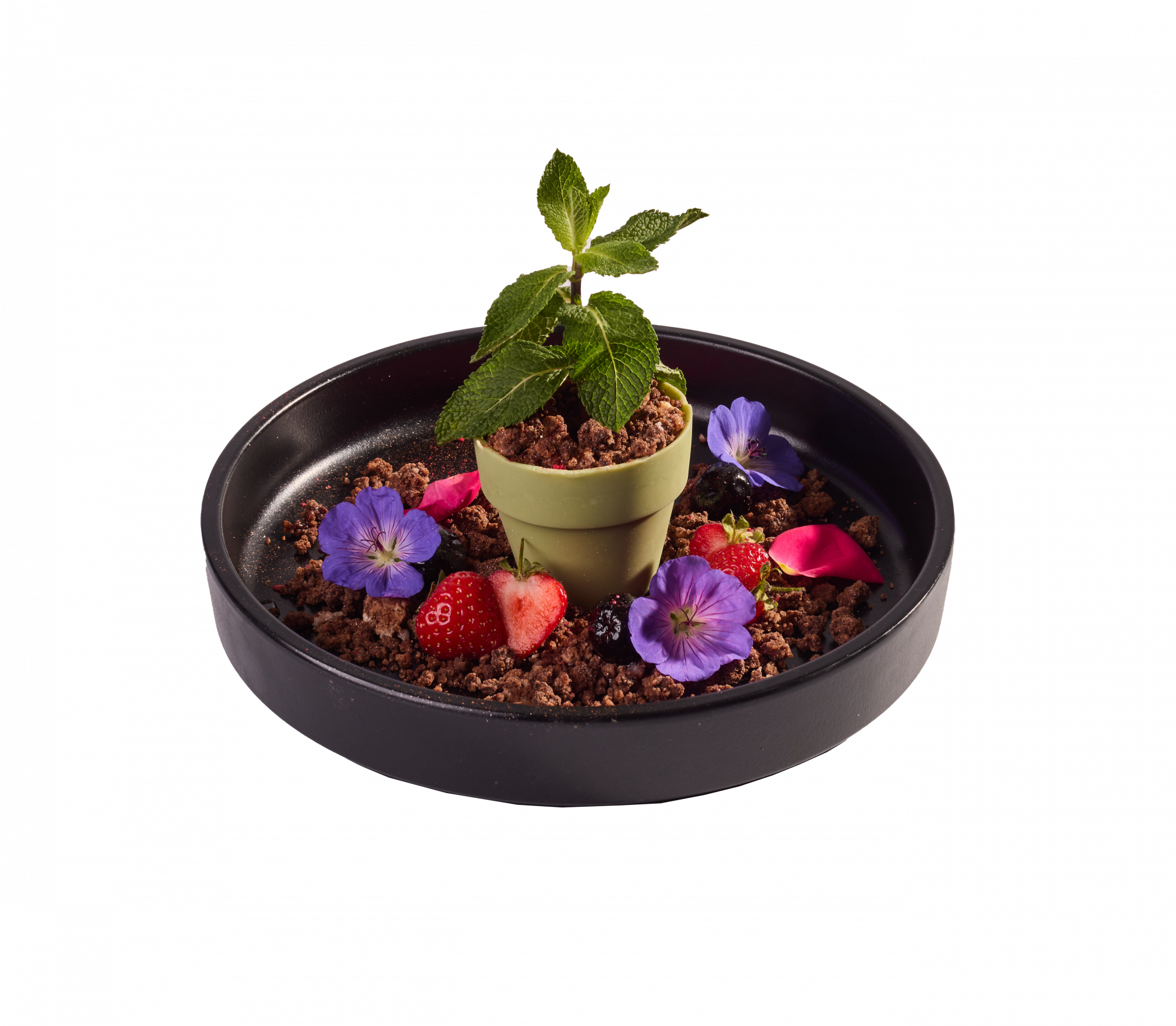 Chocolate Plant Pot + moist chocolate cake + cherries + cherry syrup + double cream + chocolate fudge sauce + fresh berries + choc... Read more