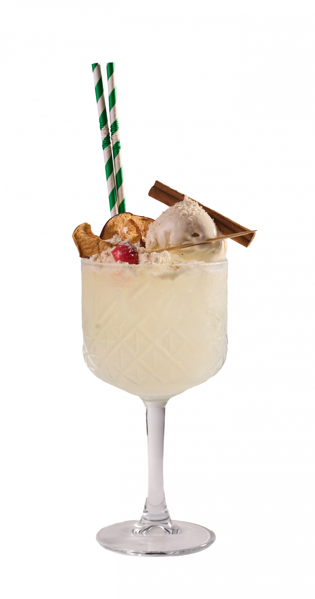 Bacardi Coconut + pineapple juice + vanilla syrup + double cream + lime juice + vanilla gelato + foam banana sweets + cherries + p... Read more